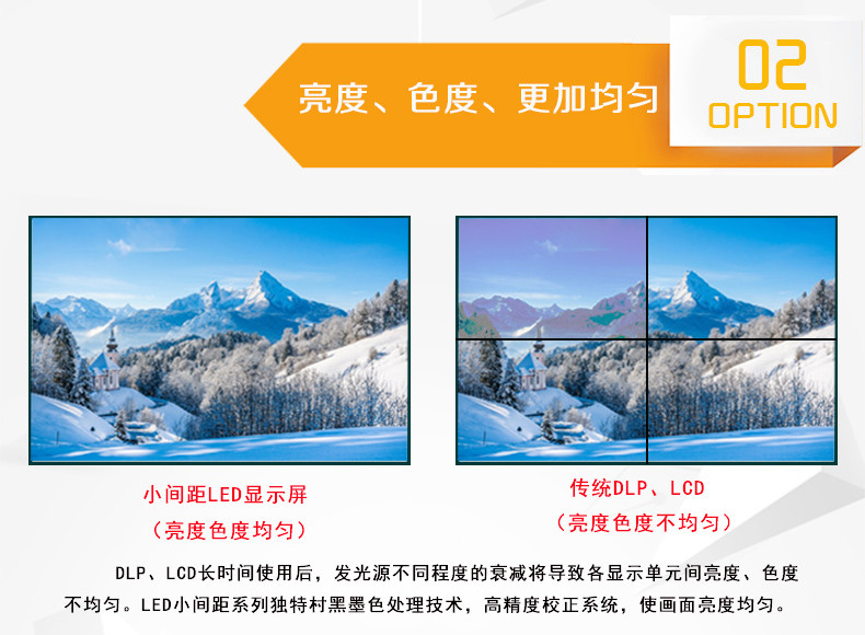 2、獨(dú)自開模,16:9的黃金比例,完美替代LCD、DLP拼接尺寸。